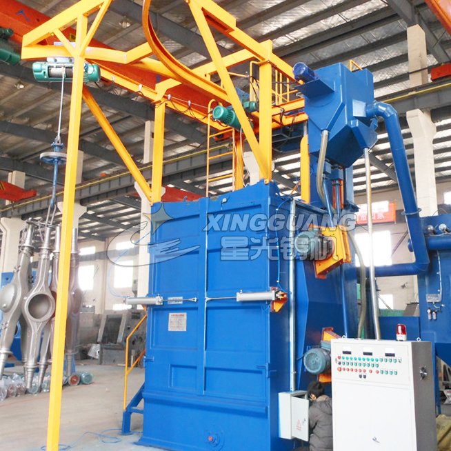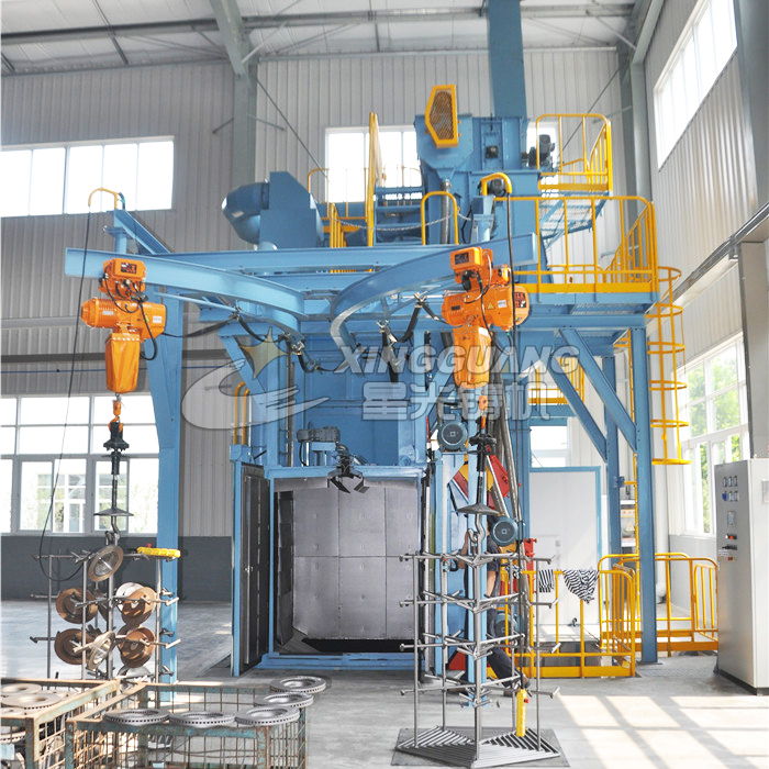 吊鉤式拋丸機分為單吊鉤和雙吊鉤,由吊鉤將工件送入清理室內,利用拋丸器將拋丸彈向工件,高速運轉之下,打磨掉工件所有部位的粗糙面,使得工件變得美觀,同時又增強工件的壓應力?!?/p>